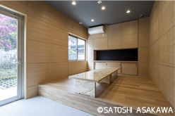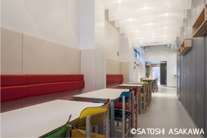 入り口から赤い背もたれがくつろぎのひとときにアクセントを添えます。中央グループでの会合にピッタリのテーブル席は、配置を変えることもできます。お座敷お子様連れに優しいお座敷席です。